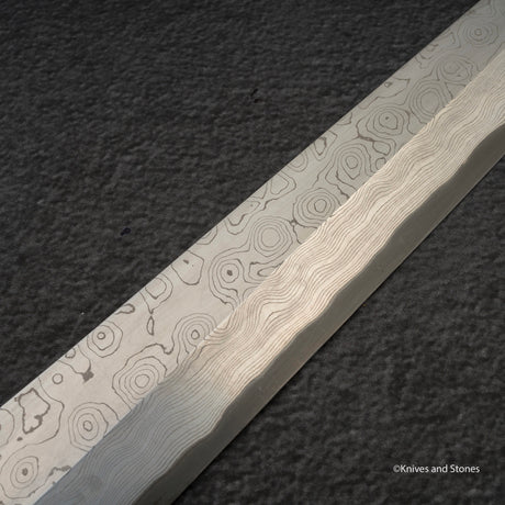 Nigara Anmon Kurozome Blue 2 Damascus Yanagiba 330mm
