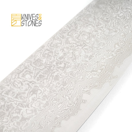 Hatsukokoro Ginsan Damascus Tsuchime Gyuto 210/240mm with Teak Wood Handle, by Yoshihiro Yauji