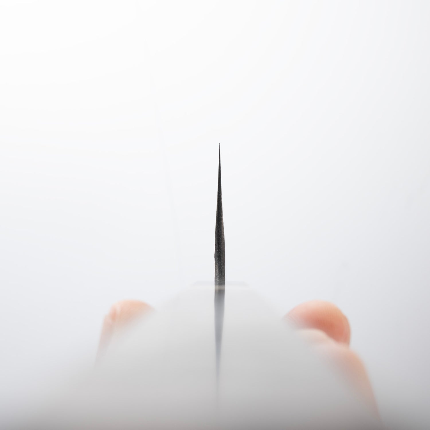 This kind of "Heavy Blade with a Fine Edge" approach was seen on some of the Tosa knives like the Kurokuma Line, but compaire with a low sabre grind, the high concave grind on these blade have way less resistance and wedging on dense food, the downside is, it can creat some stickiness on the wide bevel. However, as the heavy blade carries quite a lot of inertia, it can push through the drag on the bevel regardlessly and allows this to be one of the few knives in our collection that can cut through potato with just gravity.