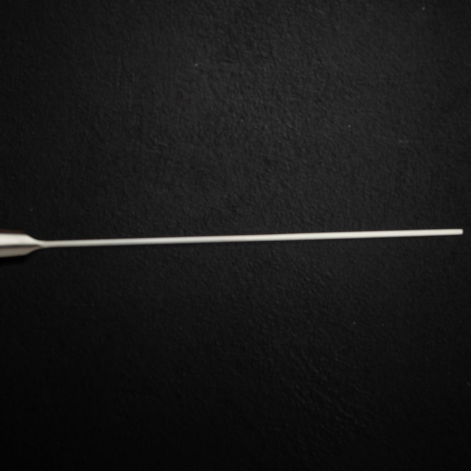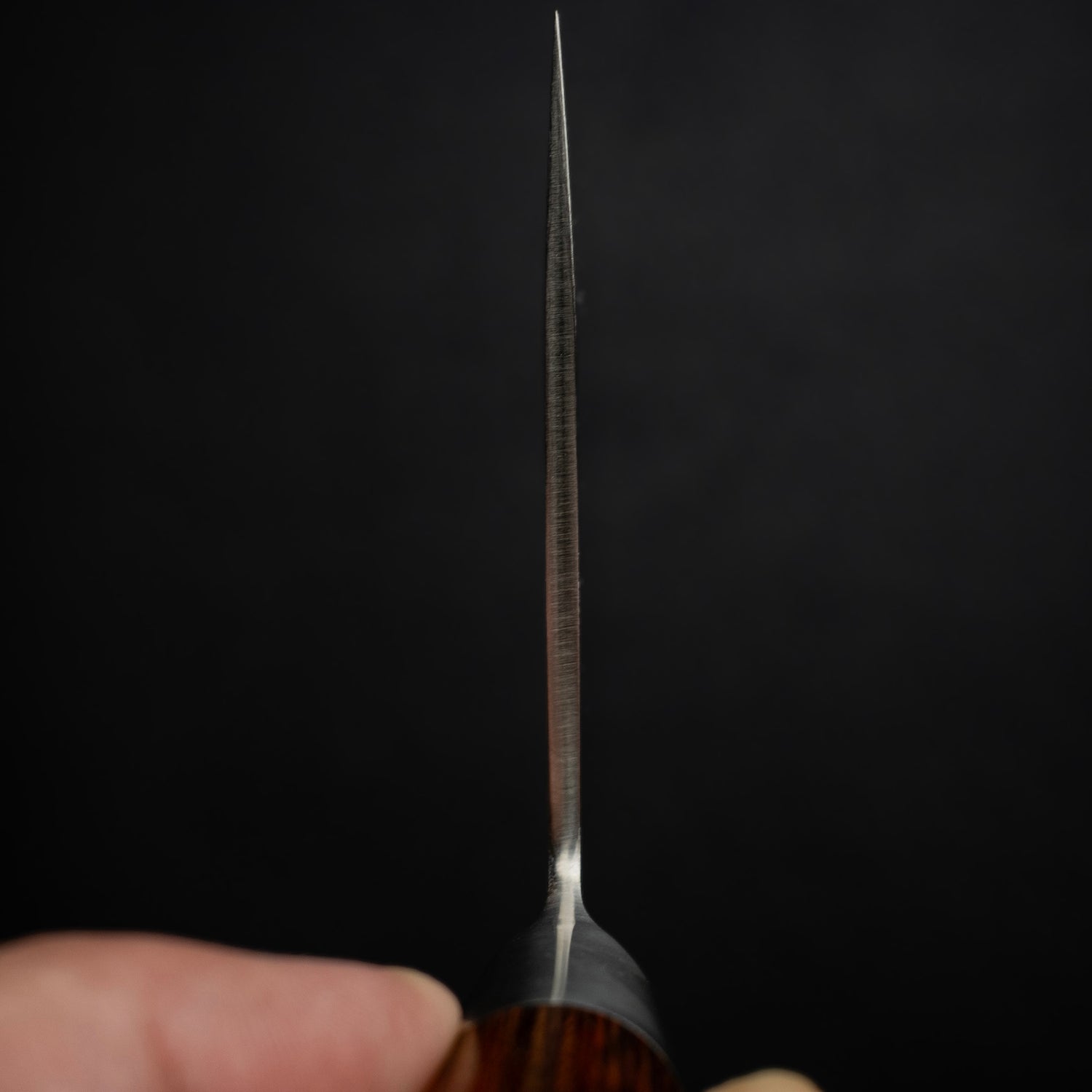 The San line perfectly combines elegance with utility. 3 Layer (sanmai) construction, with VG5 core heat treated to a perfect hardness of HRC 61, giving the knife a very strong edge retention. The bevel is hand sharpened and polished by hand, giving the edge an unmatched sharpness.