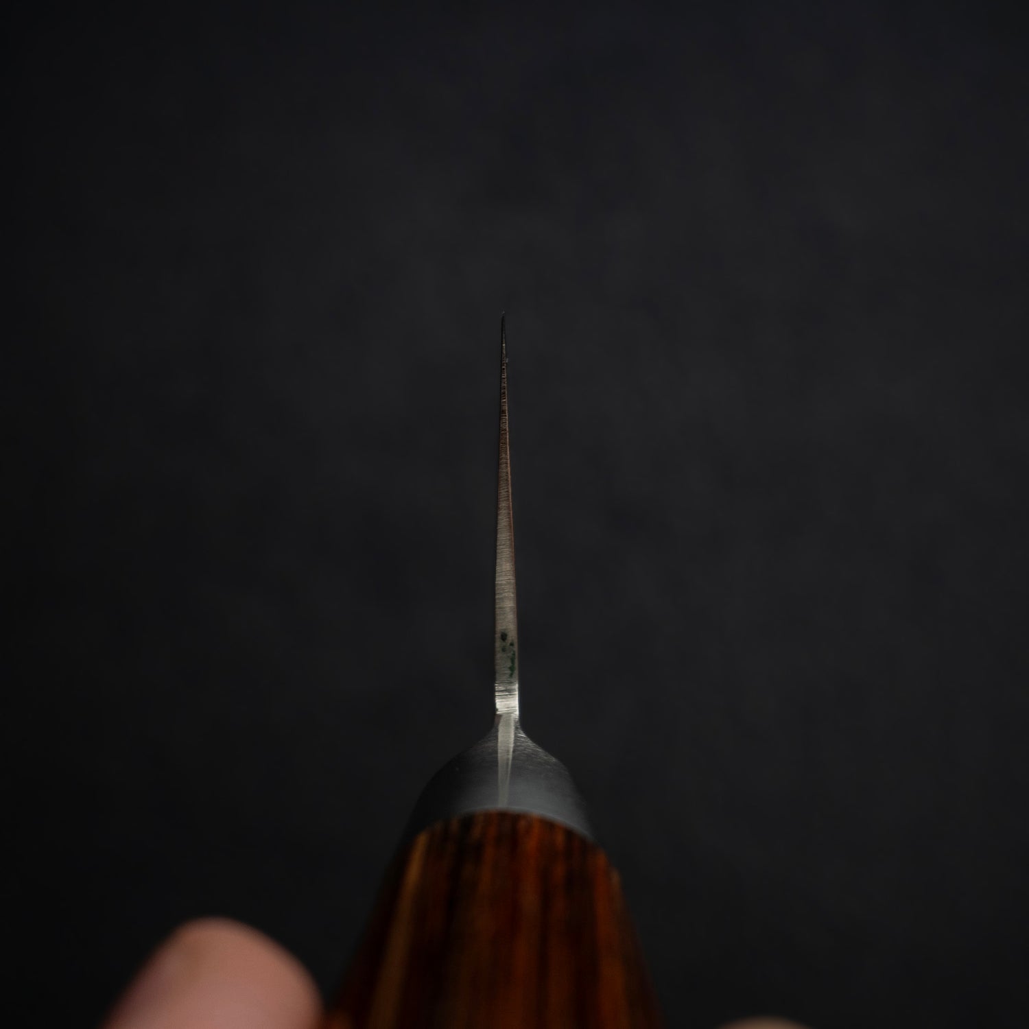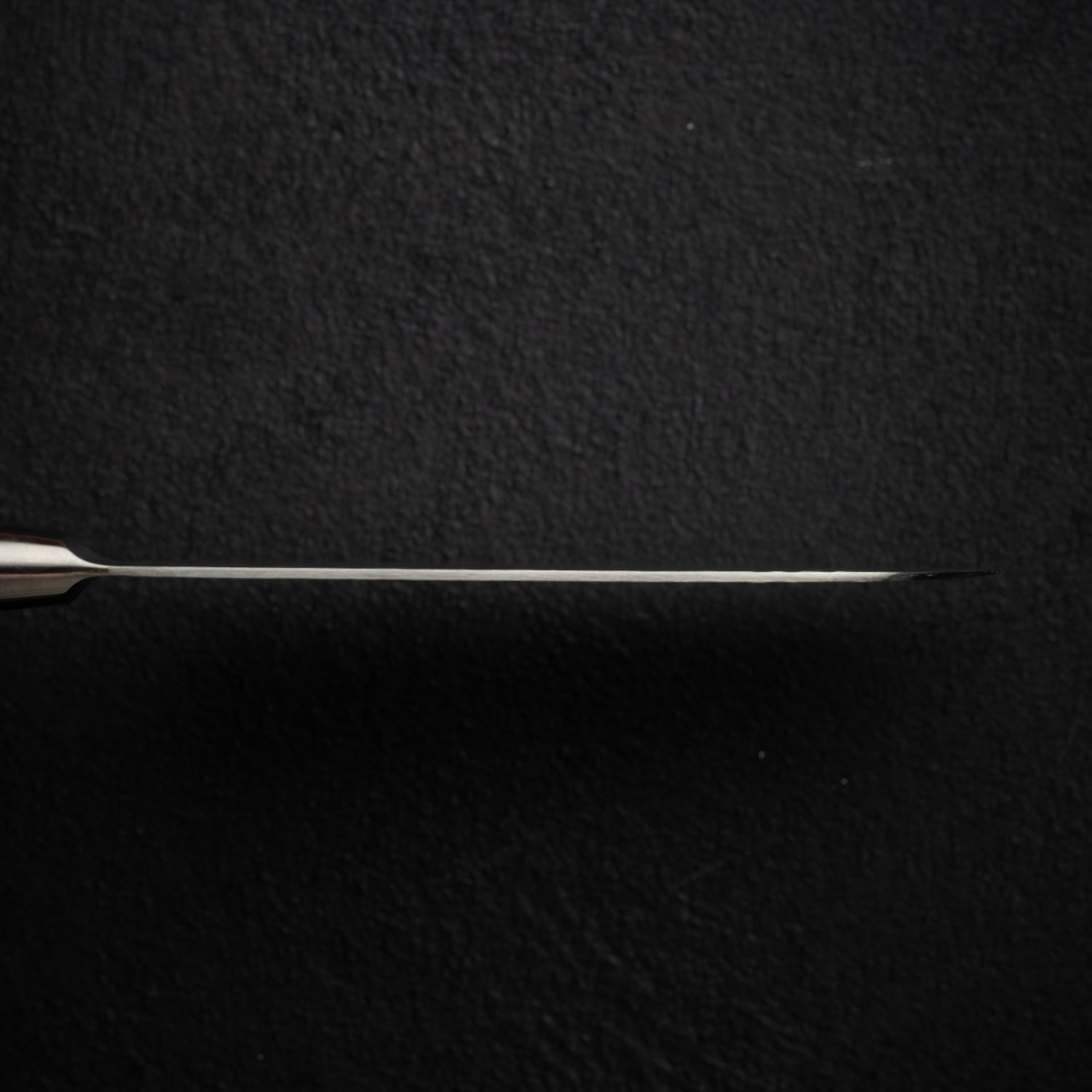 The San line perfectly combines elegance with utility. 3 Layer (sanmai) construction, with VG5 core heat treated to a perfect hardness of HRC 61, giving the knife a very strong edge retention. The bevel is hand sharpened and polished by hand, giving the edge an unmatched sharpness.