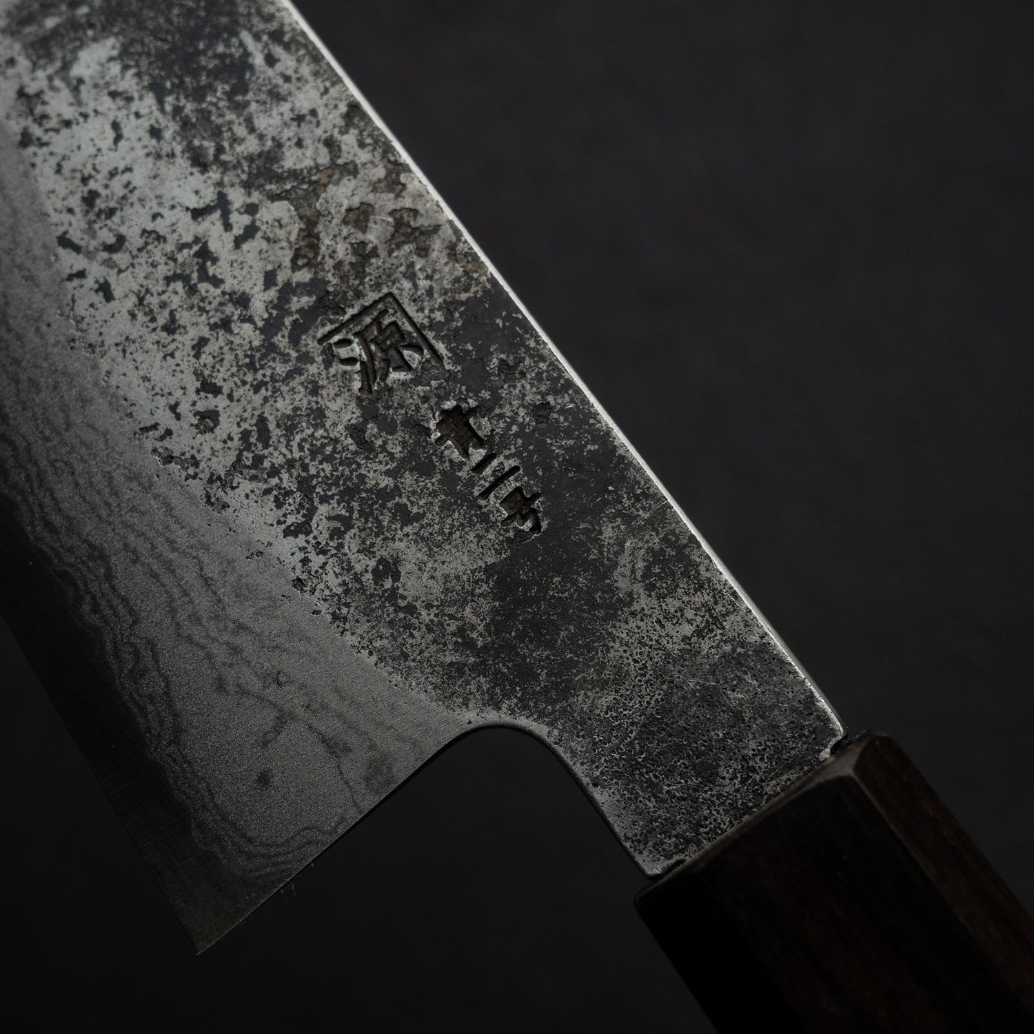 Tanaka Blue 2 Damascus Santoku 170mm Kurouchi Nashiji