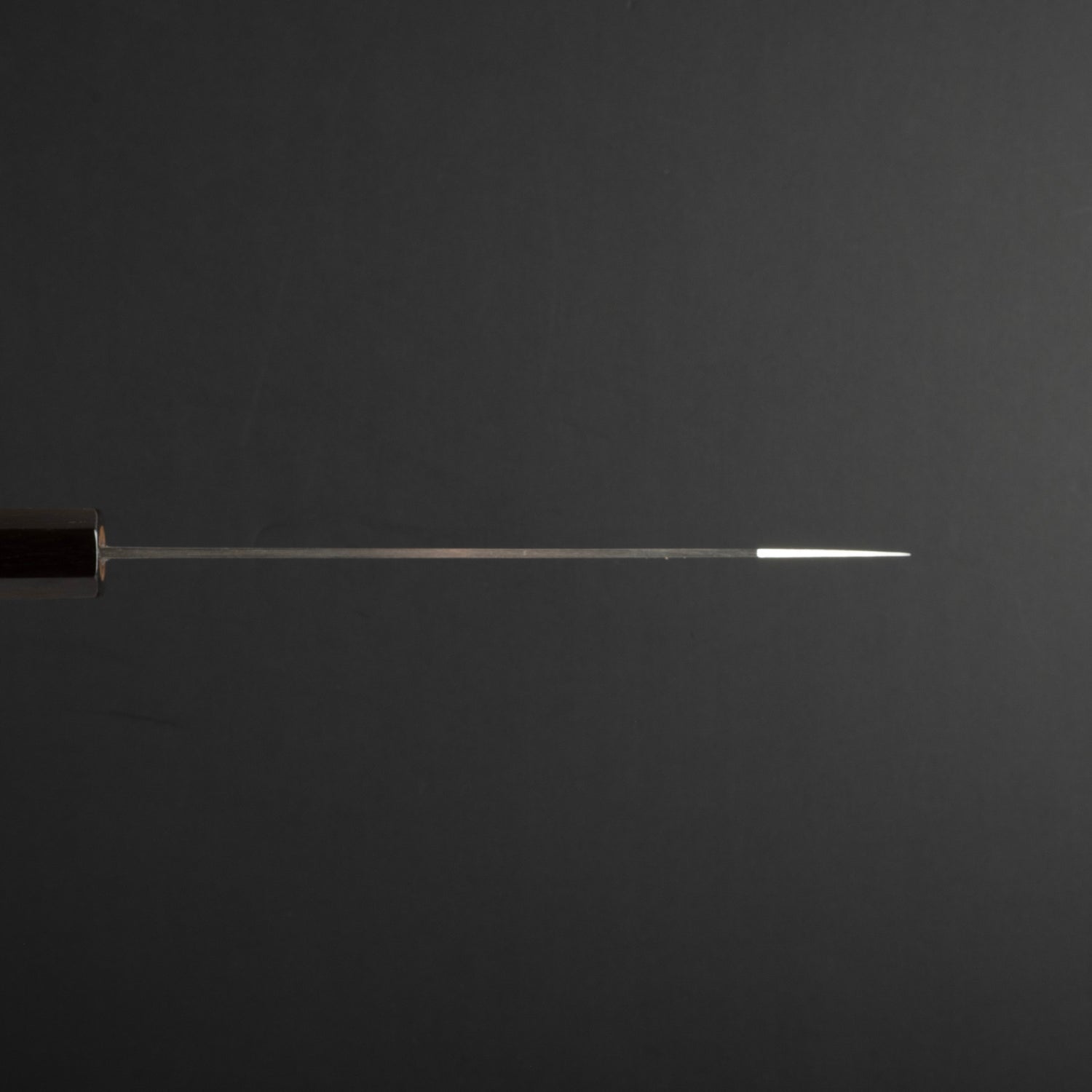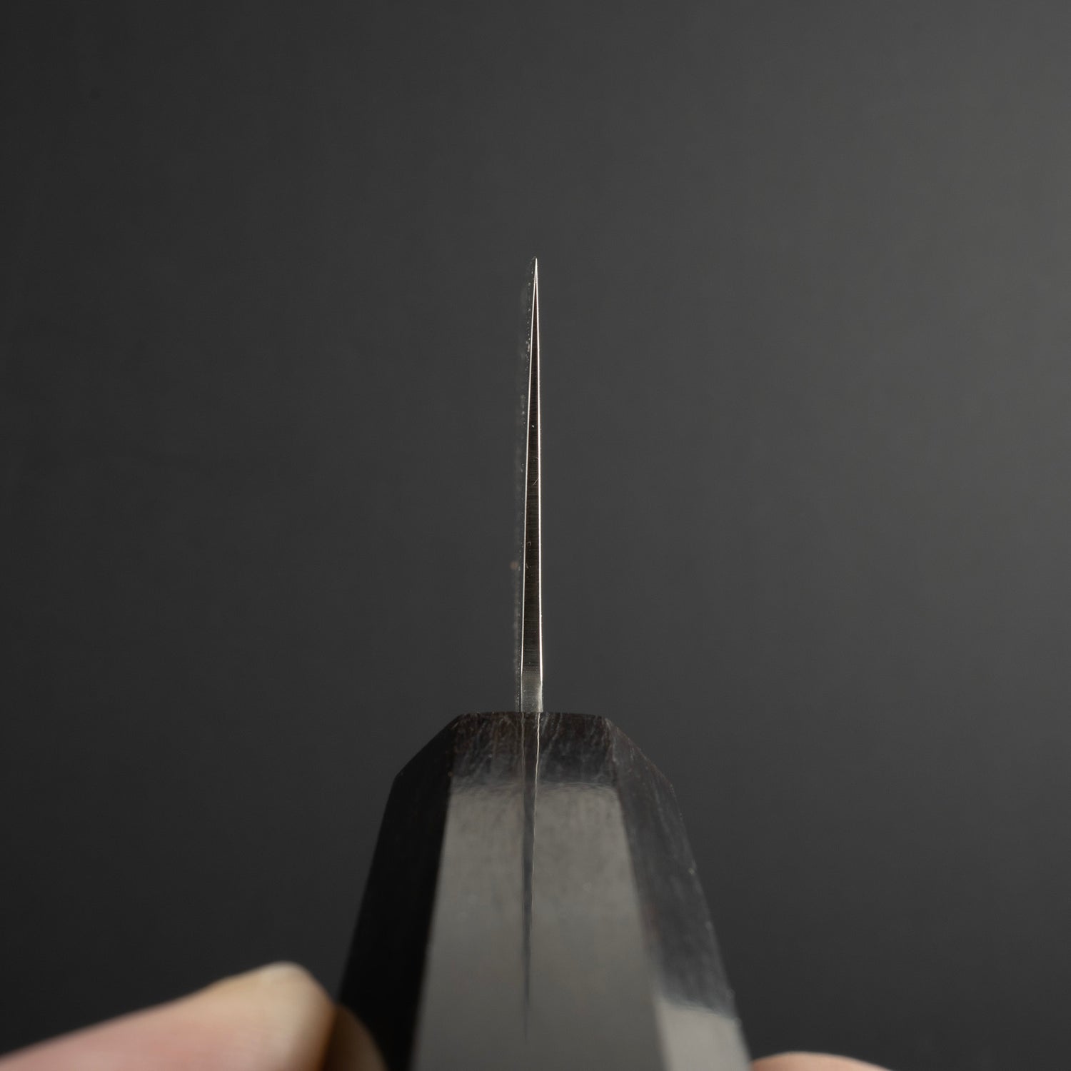 「Migaki」在日文中意指「拋光」或「磨亮」。在日本廚刀領域,「Migaki仕上」並不專指鏡面拋光,而是泛指從半光澤到細膩柔和光澤的各種拋光處理,而非極度反光的表面。Migaki拋光的主要目的是提升刀具的功能性與美觀,重點在於打造光滑表面以增強抗腐蝕性並減少切割時的阻力,而不是單純追求鏡面效果。