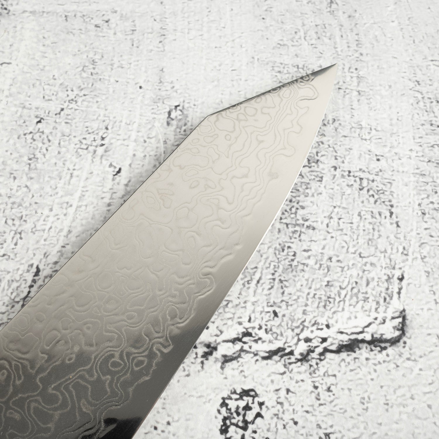 初心似乎注意到這一點,並著手改良生產流程。流冰系列不僅價格更親民,切割手感也更順滑。其刀型屬於類似軍刀型/V型磨,線條過渡自然,沒有明顯的筋線,不僅讓食材在刀面上滑動時不易黏附,也保留了美麗的大馬士革紋路貫穿整個刀身。或許這正是「流冰」命名的由來。