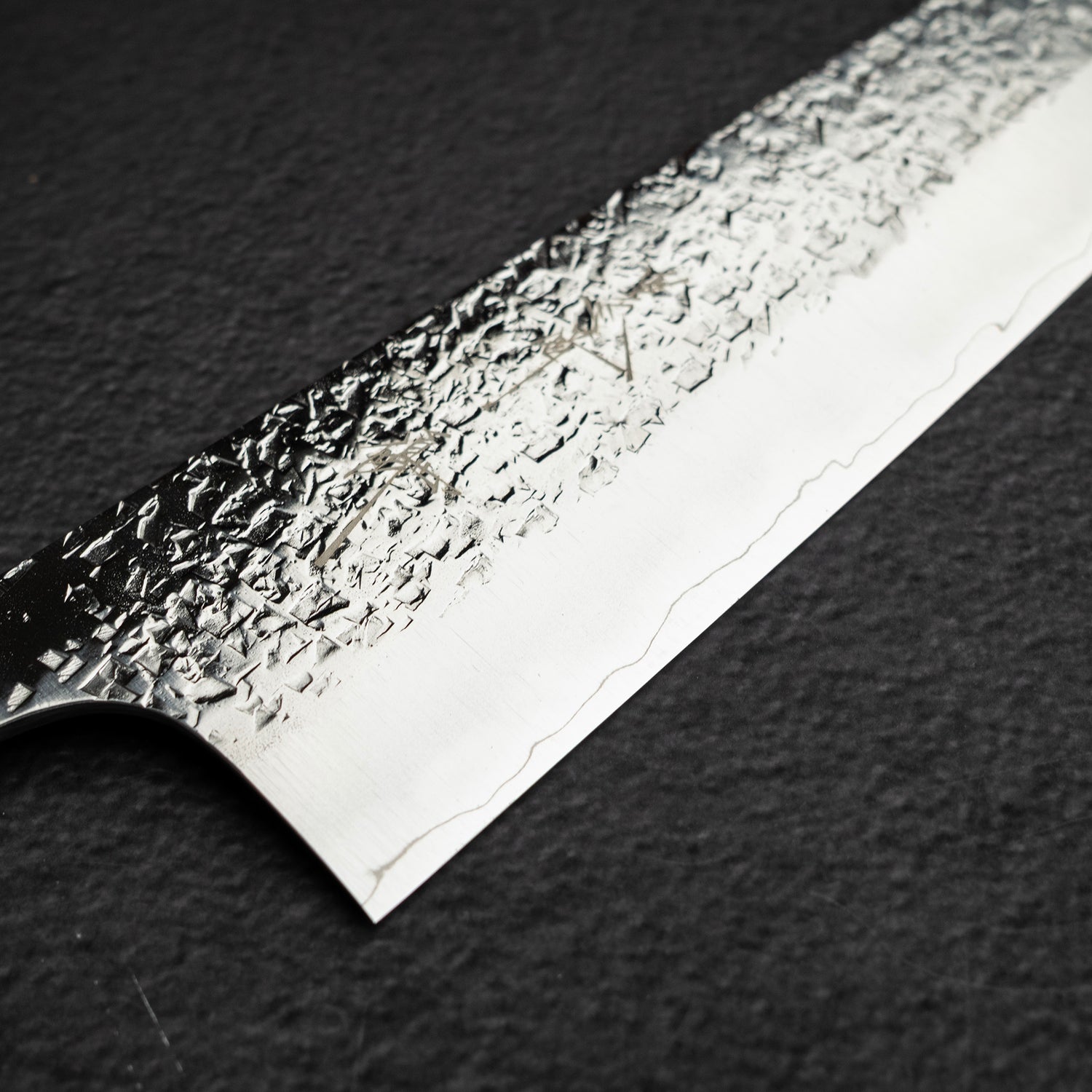 At the core is SG2 (R2) powdered stainless steel, hardened to around 62–63 HRC for exceptional edge retention and a razor-sharp, long-lasting edge. The signature “Shizuku” tsuchime finish, inspired by falling water droplets, reduces food sticking while adding distinctive character.